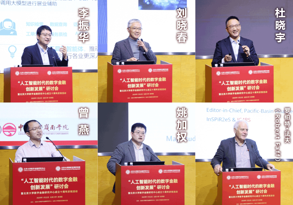 研讨会聚焦“AI在金融中的应用”与“AI与金融学研究”两大前沿议题,分别由蚂蚁集团研究院院长李振华、上海新金融研究院副院长刘晓春、腾讯研究院副院长杜晓宇等业界专家,以及中山大学岭南学院教授、新疆大学经管学院副院长曾燕,中国科学技术大学科技商学院教授姚加权,昆士兰大学荣休教授、Pacific-Basin Finance Journal主编罗伯特·法夫(Robert Faff)等学界代表,深入分享大模型技术的发展趋势、在金融业的应用与挑战,以及金融创新的本质、核心要素、技术与业务的适配性、全球AI金融研究的最新趋势等重要话题。