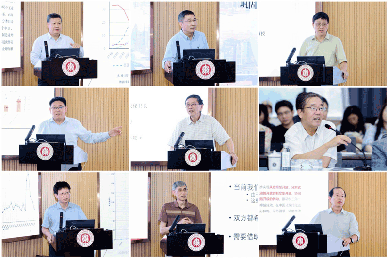 会议发言第一阶段由浙江大学文科资深教授李实主持。中国社会科学院经济研究所黄群慧研究员作为引言人,聚焦“十五五”时期如何以高水平开放推进新质生产力发展。浙江大学原副校长罗卫东教授的发言主题为“巩固文明共识、确立文化自信,高水平推动制度型开放”。南京大学长江产业发展研究院常务院长刘志彪教授的发言主题为“从规则统一走向规模壮大:全国统一大市场建设的战略转变与政策选择”。分享了中国高质量发展的宏观经济学的逻辑与框架,认为中国经济在高质量发展阶段总体平稳、稳中有进,重点领域风险化解有序有效,民生保障扎实有力。