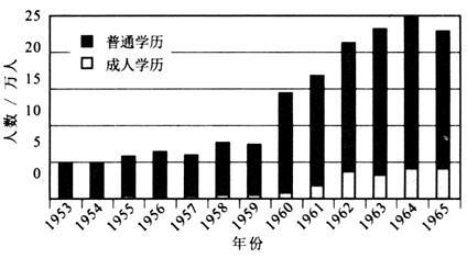 图l 1953-1965年高等学历教育本科及专科毕业生数[5]