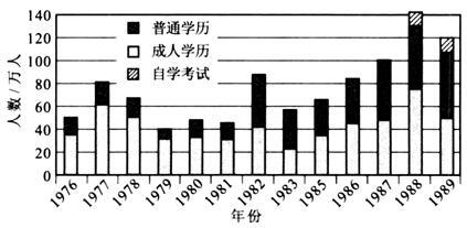 图2 1976-1989年高等学历教育本科及专科毕业生数[5-6]