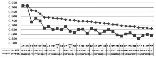 图2 2016年与2010年各省(直辖市、***)教育现代化发展指数