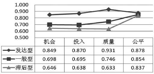 图5 不同类型省(***、直辖市)在教育现代化各指标上的得分均值