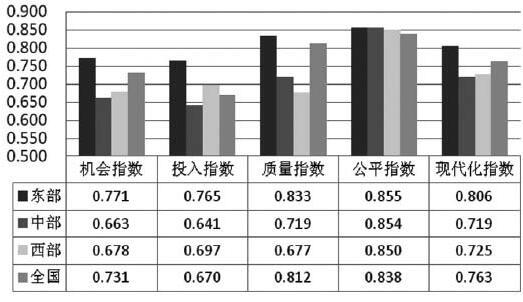 3.西部地区教育现代化发展指数提高幅度最大,东部最小