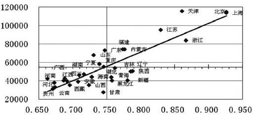 图7 各省(***、直辖市)教育现代化发展水平指数与人均GDP的关系图