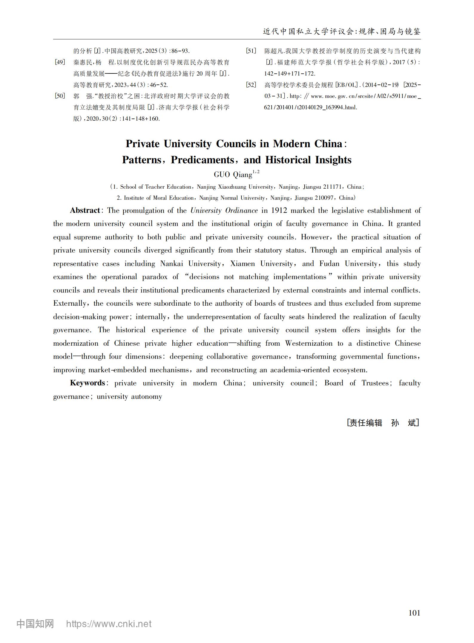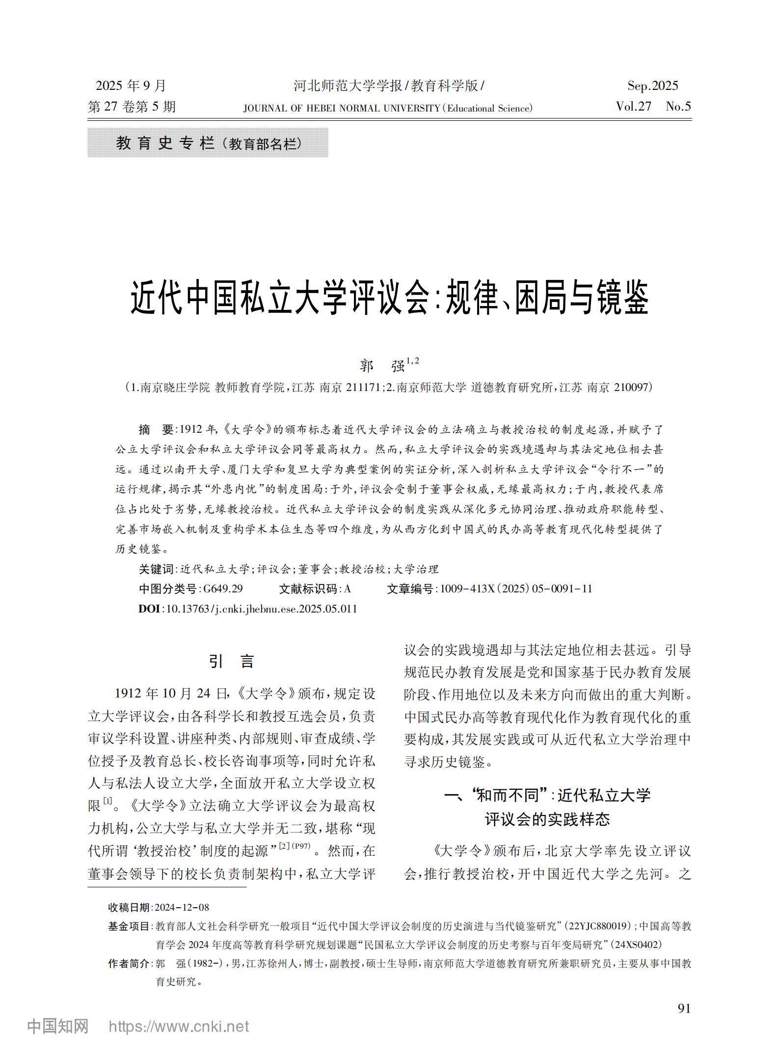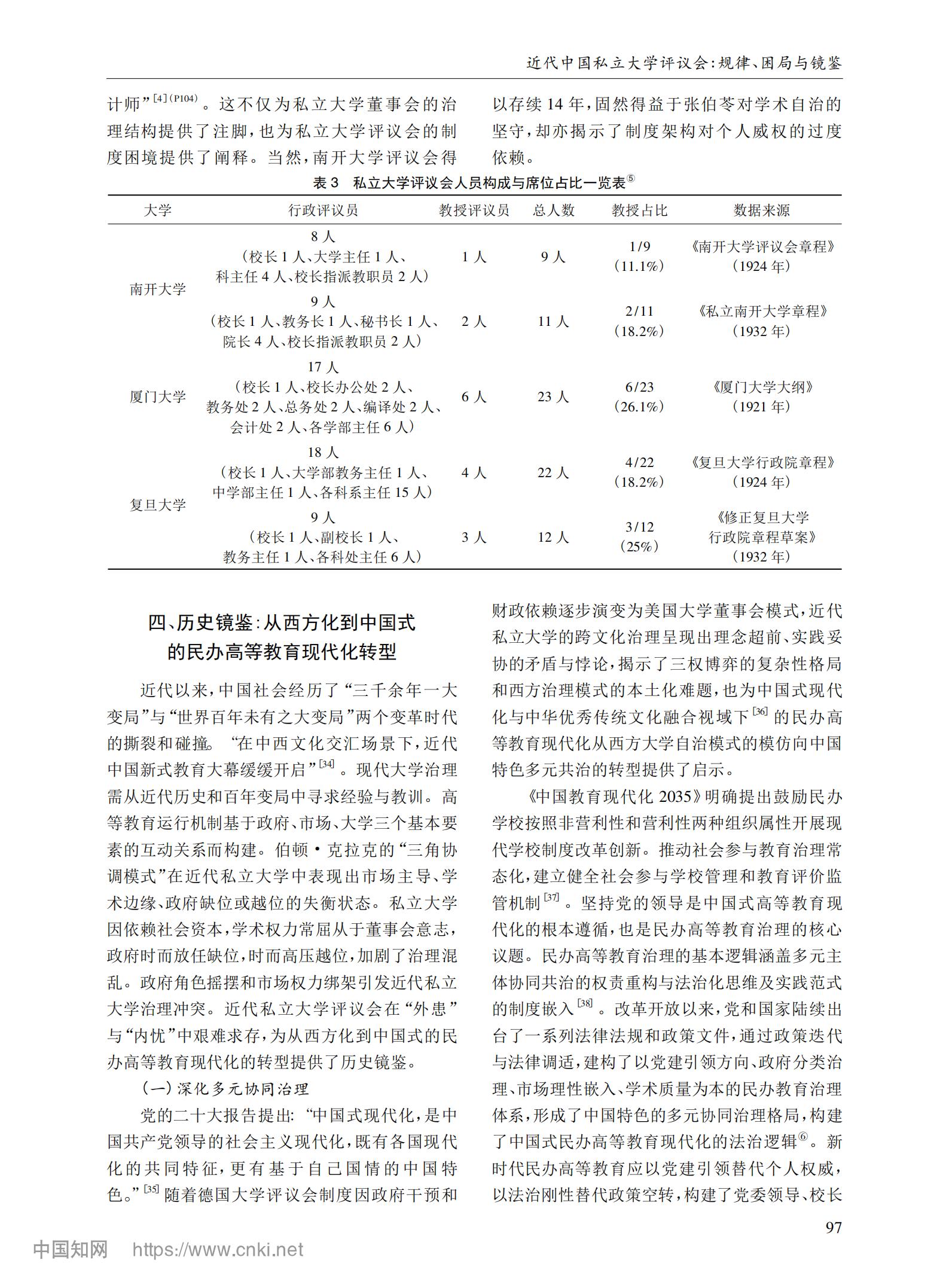 近代中国私立大学评议会: 规律、困局与镜鉴