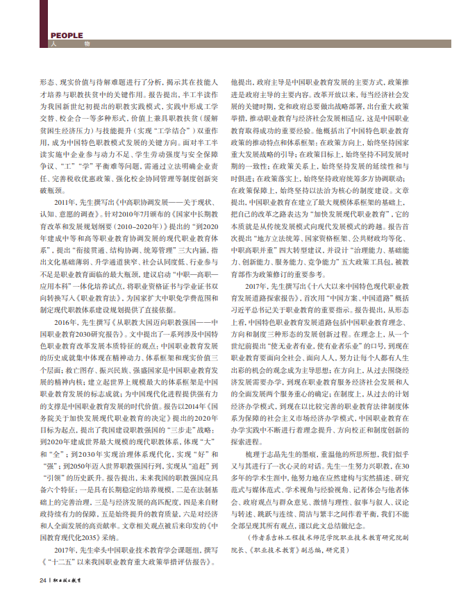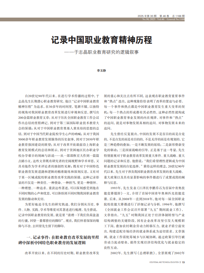 ——于志晶职业教育研究的逻辑叙事