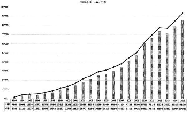 二、1993-2015年北京市中小学教师工资水平