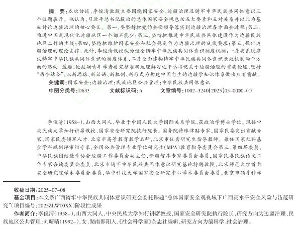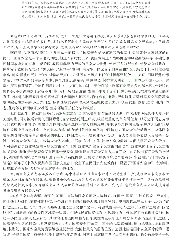 ——中央民族大学国家安全研究院执行院长李俊清教授访谈