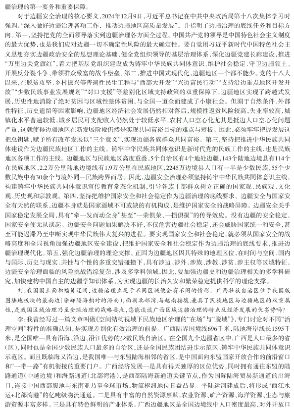 边疆安全是边疆治理的第一要务和重要保障