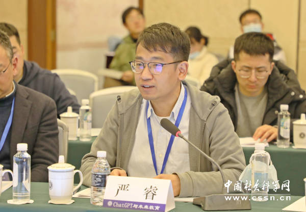 中国人民大学高瓴人工智能学院长聘副教授严睿作交流发言 本网记者 查建国/摄
