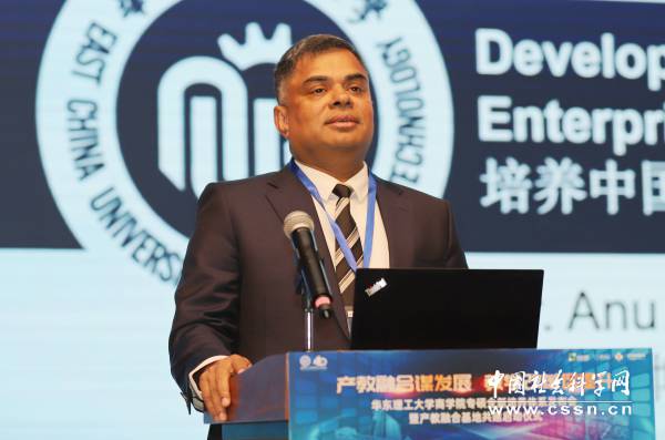 华东理工大学商学院客座教授、江森自控亚太区总裁朗智文(Anuruddha Rathninde)发表题为“培养中国的年轻一代企业管理人才走向世界”的主题演讲。他围绕“中国经济发展的三个阶段”“中国企业全球业务版图”“中国企业及领导力演化”等方面展开阐述。他提到,年轻一代企业管理者既要扎根中国,也要心怀世界;既要学贯中西,也要坚定文化自信,同时还应该具备处理复杂问题和系统性思考的能力,从而真正打造并提升全球领导力。