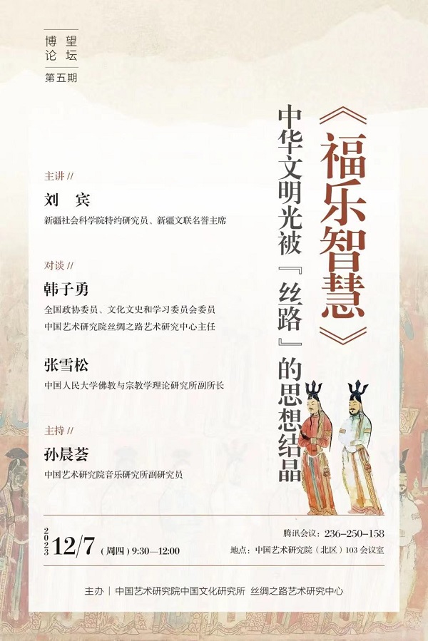 中国社会科学网讯(记者胡子轩)12月7日,由中国艺术研究院中国文化研究所、丝绸之路艺术研究中心主办的“博望论坛”第五期在北京举行。本期论坛以“《福乐智慧》:中华文明光被‘丝路’的思想结晶”为主题,邀请新疆社会科学院特约研究员、新疆文联名誉主席刘宾带来精彩演讲。