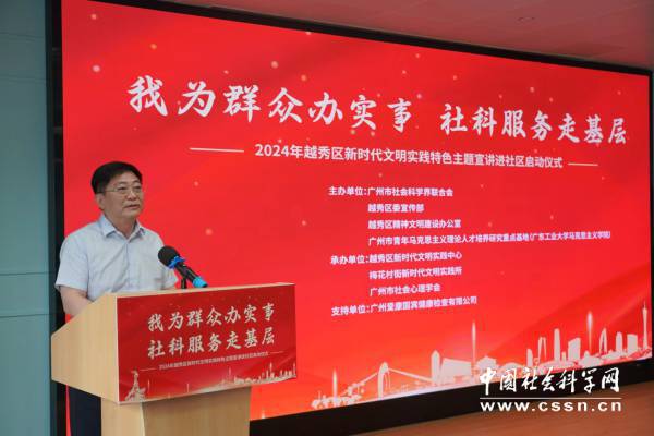 中国社会科学网讯(记者 李永杰 通讯员 戴卫春 江展鹏)如何着眼群众的需求解疑释惑、阐明道理,把学问写进百姓的心坎里?广州市社会科学界联合会联动所属学会,与越秀区18个街道新时代文明实践所(站)启用“订单式服务”深度合作模式,以群众“点单”、专家“接单”的鲜活形式,关切民生实事,开展内容丰富的社科服务活动。5月15日,“我为群众办实事 社科服务走基层”——2024年越秀区新时代文明实践特色主题宣讲进社区活动正式启动。