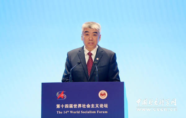 中国社会科学网讯(记者高莹)9月9—10日,第十四届世界社会主义论坛在北京召开。论坛主题为“当前的世界之变、时代之变、历史之变”。中国社会科学院副院长、党组成员甄占民,中共中央对外联络部副部长陈洲,老挝国家政治行政学院院长普冯·温坎显,西班牙共产党主席、欧洲左翼党副主席何塞·路易斯·森特利亚出席开幕式并作主题演讲。中国社会科学院原副院长、世界社会主义研究中心主任李慎明作书面演讲。