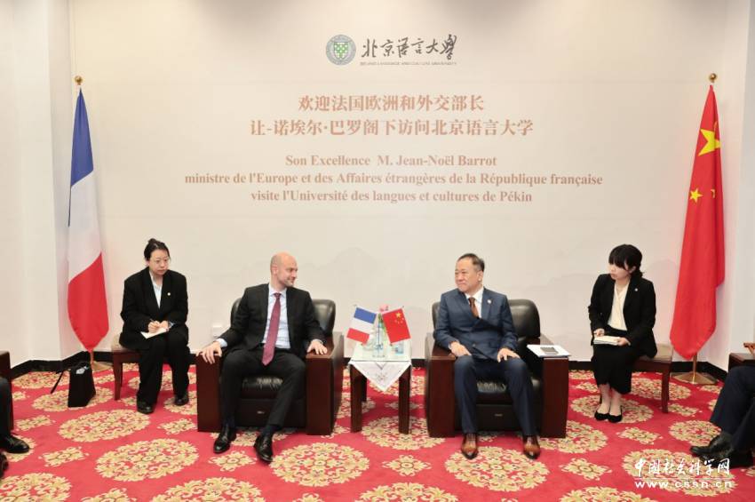 段鹏表示,中法两国在各方面的合作广泛深入、硕果累累,尤其是在教育和文化方面的交往更是历久弥新,充满了生机与活力。北京语言大学与巴黎法语联盟合作开办的北京法语联盟办学成果尤为显著,它不仅是中国法语联盟网络的领军成员,也是全球前十大法盟之一,为促进中法文化交流发挥着举足轻重的作用。北京语言大学还不断深化与法国克莱蒙高等商学院等法方高校之间的合作,在白玉堂大使的大力支持下,向中国教育部提出了在海南设立北京语言大学克莱蒙商学院语言科学与产业学院这一非独立法人中外合作办学机构的请示。相信巴罗外长的此次来访,会将北京语言大学与法国高校之间的教育交流以及中法全面合作推向新的高度。