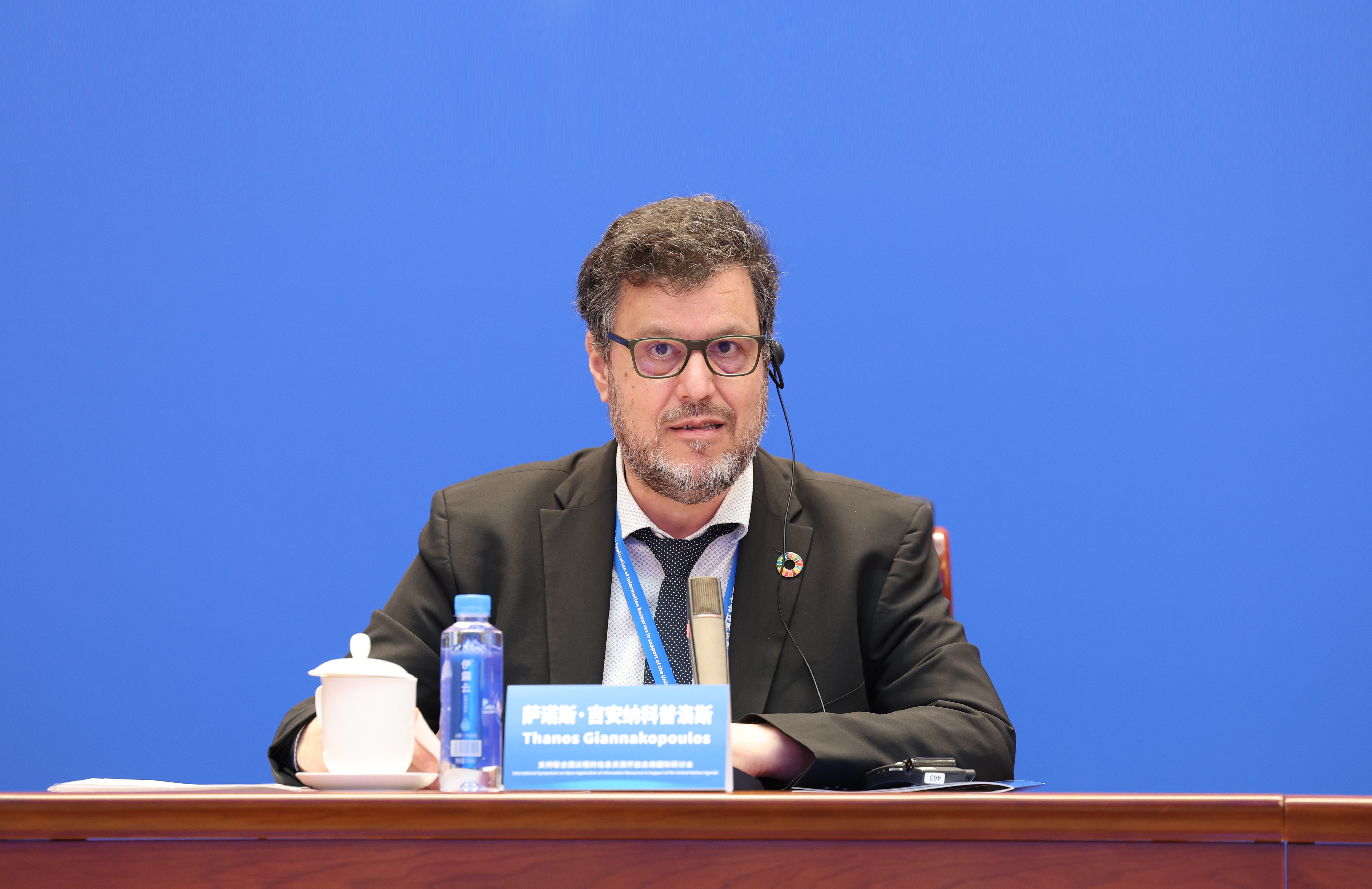 联合国达格·哈马舍尔德图书馆馆长萨诺斯·吉安纳科普洛斯致辞 本网记者 朱高磊/摄