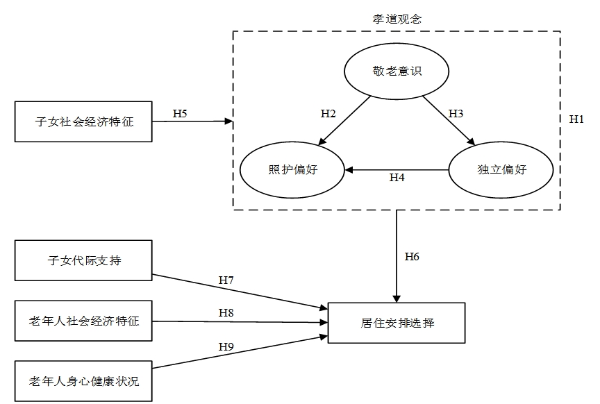 该研究立足于中国孝道文化背景,系统分析了子女孝道观念对老年人居住选择的影响,为理解家庭养老决策提供了本土化的理论阐释。与国际上偏重经济与制度因素的研究路径不同,该研究强调文化价值观在家庭决策中的基础性作用。研究团队基于“中国老年健康影响因素跟踪调查”的大规模数据,考虑孝道文化背景下老年人居住安排选择行为的内在机制,弥补以往研究对孝道观念重要性的忽视,探究子女孝道观念在老年人居住安排选择行为中的作用;此外,将集成潜变量的离散选择模型(integrated choice and latent variable model)引入老年人行为研究领域,将不可观测的孝道观念潜变量和可观测的子女孝道行为等显变量纳入研究框架,增强对居住安排选择行为的解释能力。研究成果揭示了不同背景的子女在孝道观念上的系统性差异,而这一观念差异会直接传导至老年人的居住选择决策中,从而对养老安排产生重要影响。