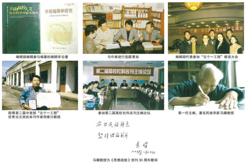 深耕特色发展。自创刊以来,《思想战线》以“民族”“边疆”“西部”为特色,不断策划开展一系列具有重要影响的学术讨论,吸纳了包括徐中舒、杨堃、方国瑜、林耀华、钟敬文、费孝通等在内的大批人文社科界重要专家学者的研究成果。创刊即设“云南少数民族历史研究”栏目,连载《云南各族历史大事记略》。2016年始设“民族政治—边疆治理”专栏,此后举办了“民族与国家”高端论坛、第三届“民族政治与边疆治理”高端论坛暨“中华民族与中华现代国家的建构和发展”学术研讨会,聚合了学术资源,推动了该领域的理论建构,推出了一批知名学者的力作,产生了重要的学术反响;2020年刊首设“新时代马克思主义”栏目,主动引导学界深化学习研究阐释习近平新时代中国特色社会主义思想,及其在边疆民族地区的实践研究,提升了《思想战线》围绕中心、服务大局的学术能力;2025年第5期起,《思想战线》恢复设立“边疆治理”栏目,积极发挥学术期刊引导新时代边疆史与边疆治理研究、推动中国自主的边疆学知识体系建设的功能。