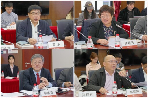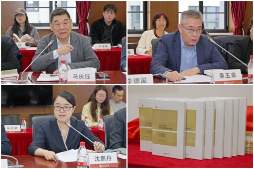 上海交通大学党委副书记周承、北京大学出版社学科副总编林君秀、上海交通大学国际与公共事务学院党委书记沈丽丹出席,上海交通大学文科建设处副处长高延坤主持会议。