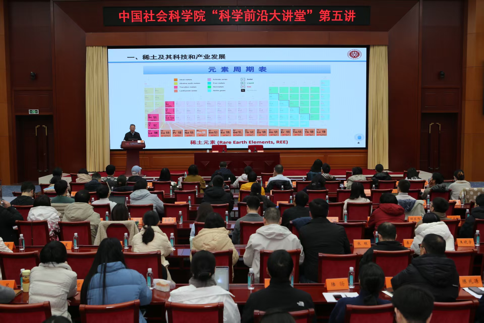 中国社会科学网讯(记者 孙美娟)11月28日,中国社会科学院“科学前沿大讲堂”第五讲在京举行。中国科学院院士、发展中国家科学院院士严纯华应邀主讲“大国博弈中的稀土”。活动由机关党委有关负责同志主持。院属各单位科研骨干、青年代表共260余人聆听了报告。