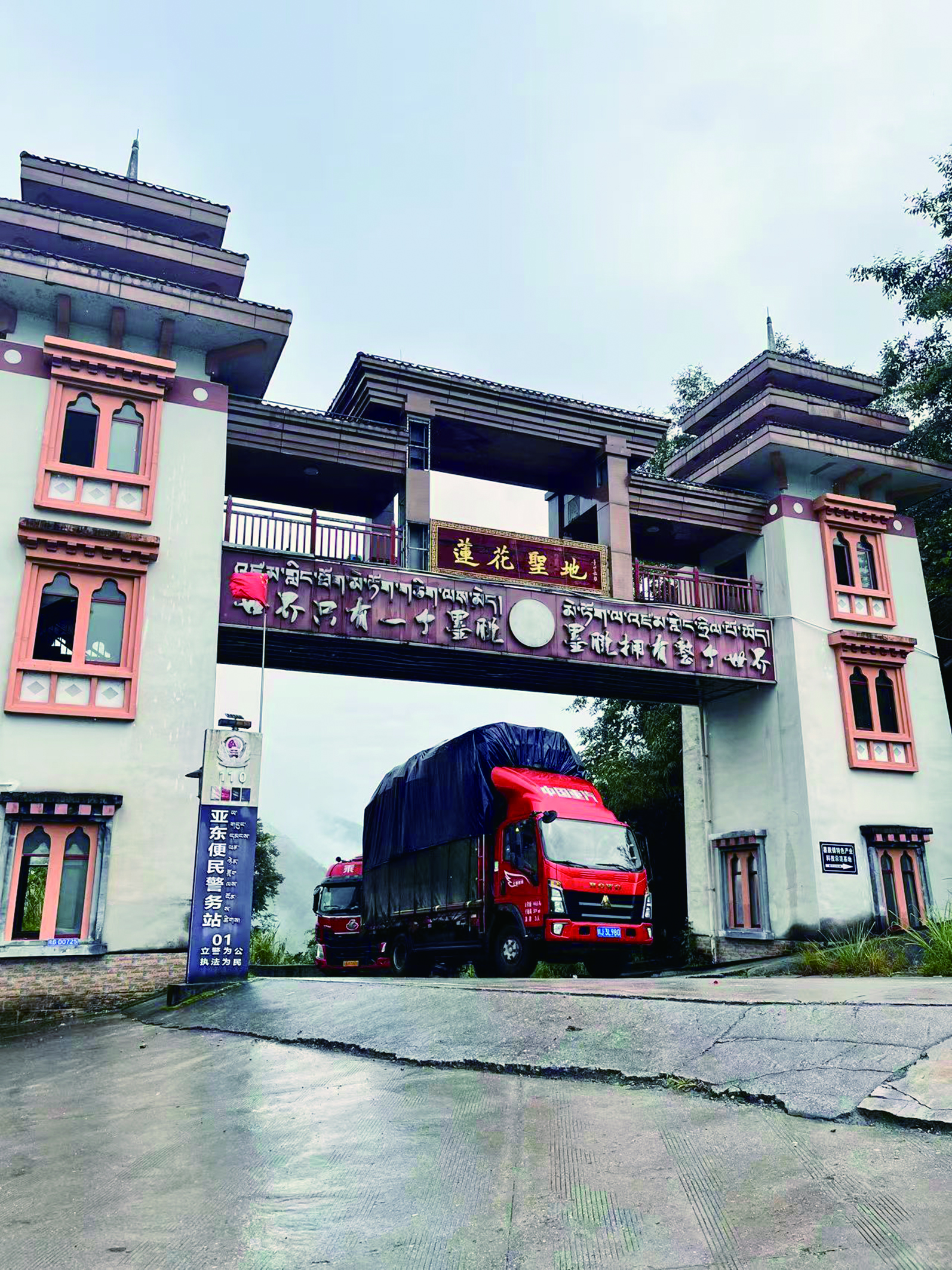 墨脱主要生活着门巴族和珞巴族,街道两侧的三四层小楼饰有木雕窗棂、彩色檐饰与经幡纹样,尽显门珞民族建筑风格。县城内,餐饮店、连锁超市、精品酒店鳞次栉比,熟悉的品牌比比皆是。正是午饭时分,旅游大巴和自驾游的私家车沿街停靠,车牌有京、川、粤、浙……来自四面八方。
