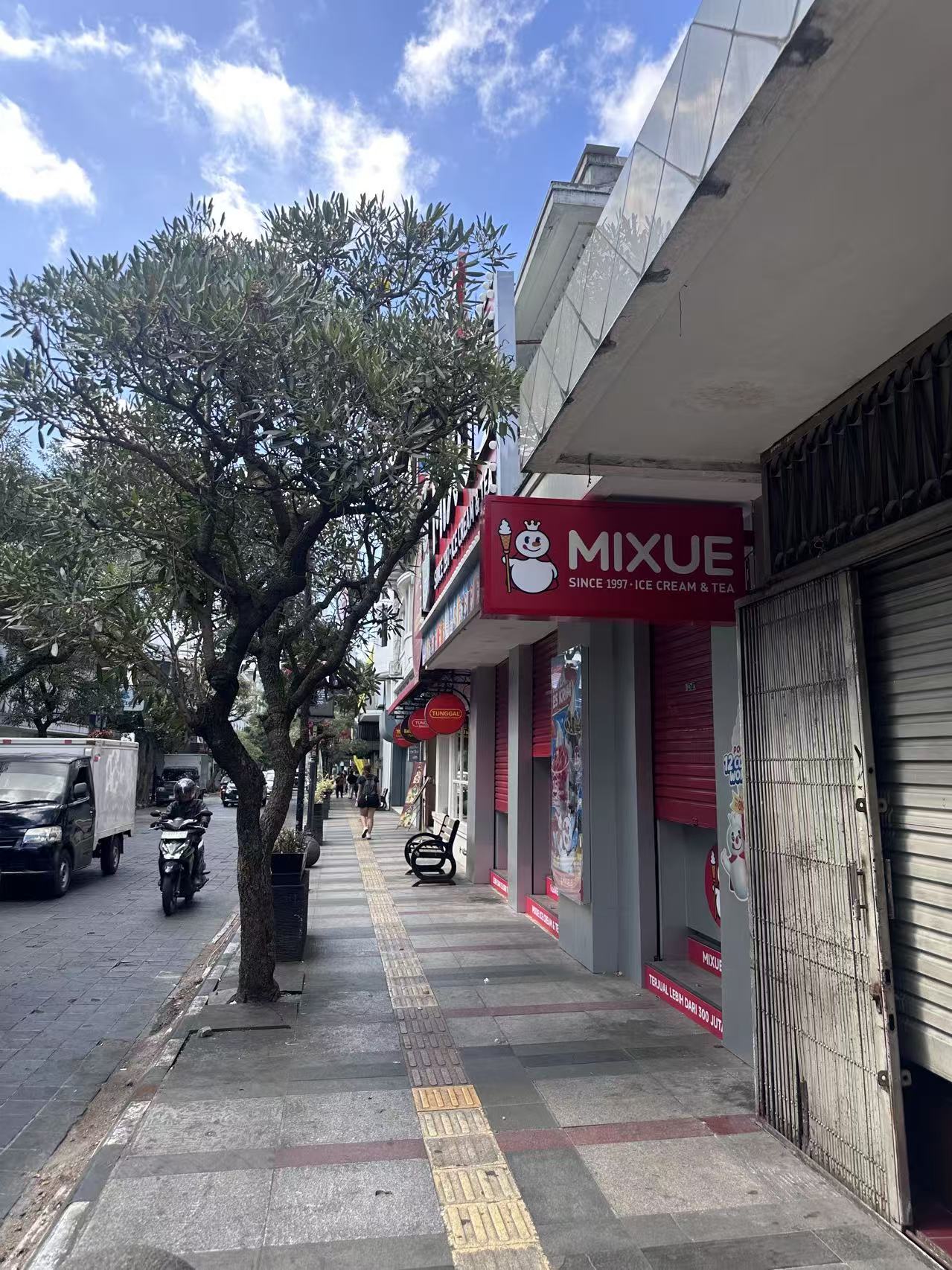 在一条普通街道上,一块红白相间的招牌——“蜜雪冰城”一下子跃入眼帘。那天由于没到当地营业时间,店面卷帘半掩,红底雪人标识在热带的阳光下显得格外醒目。对于中国人来说,这是再寻常不过的商业景观;但置于万隆的街头语境中,它便构成了“他者日常”中关于中国的一道独特印记。这一源自中国的平价消费符号,并未表现出一种突兀的文化投射姿态,而是依托其供应链优势与亲民的市场策略,自然地嵌入到当地的商业生态之中。