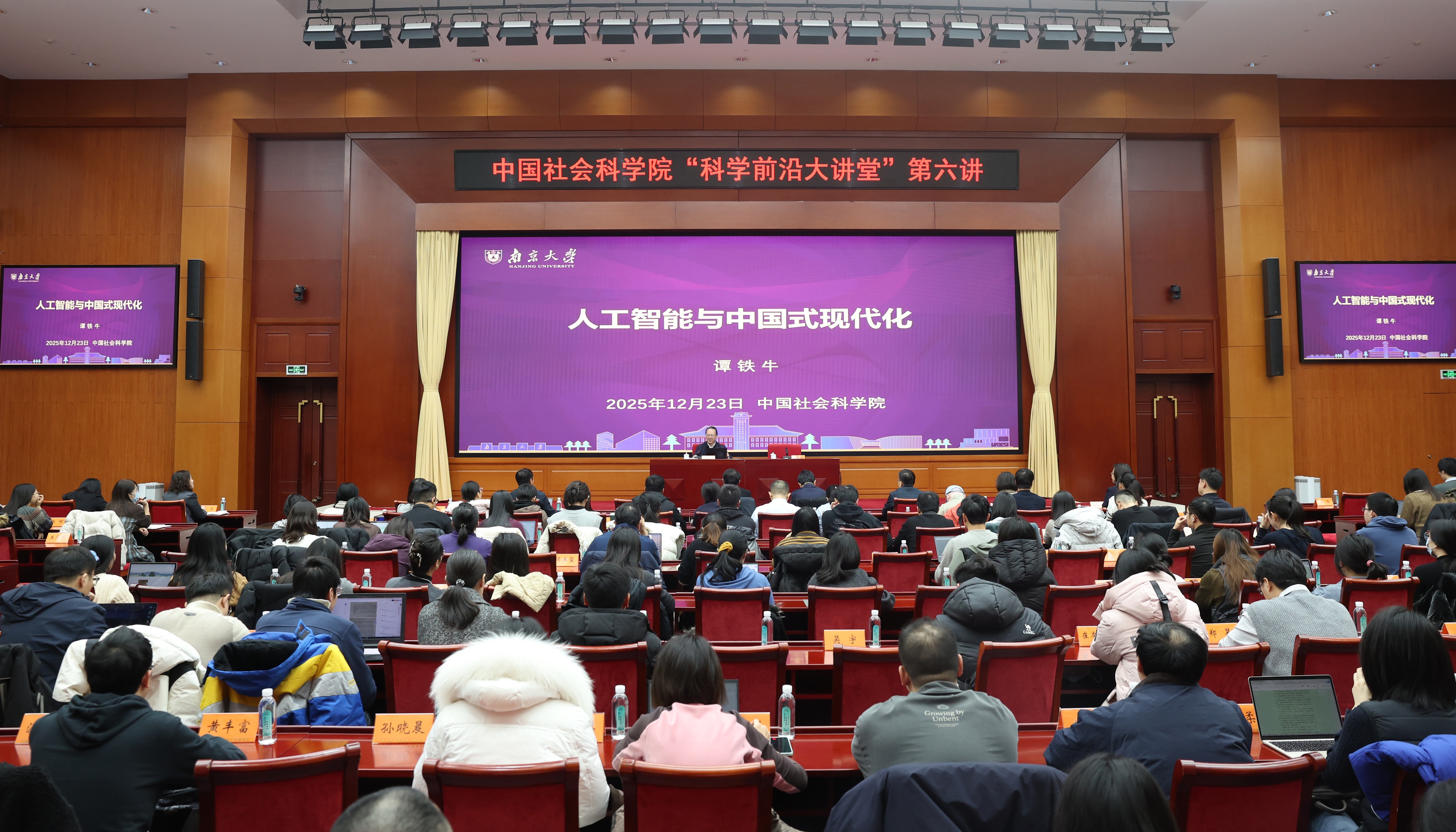 中国社会科学网讯(记者 任冠虹)12月23日,中国社会科学院“科学前沿大讲堂”第六讲在京举行。中国科学院院士、南京大学党委书记谭铁牛应邀主讲“人工智能与中国式现代化”。活动由机关党委有关负责同志主持。院属各单位科研骨干、青年代表共280余人现场聆听。