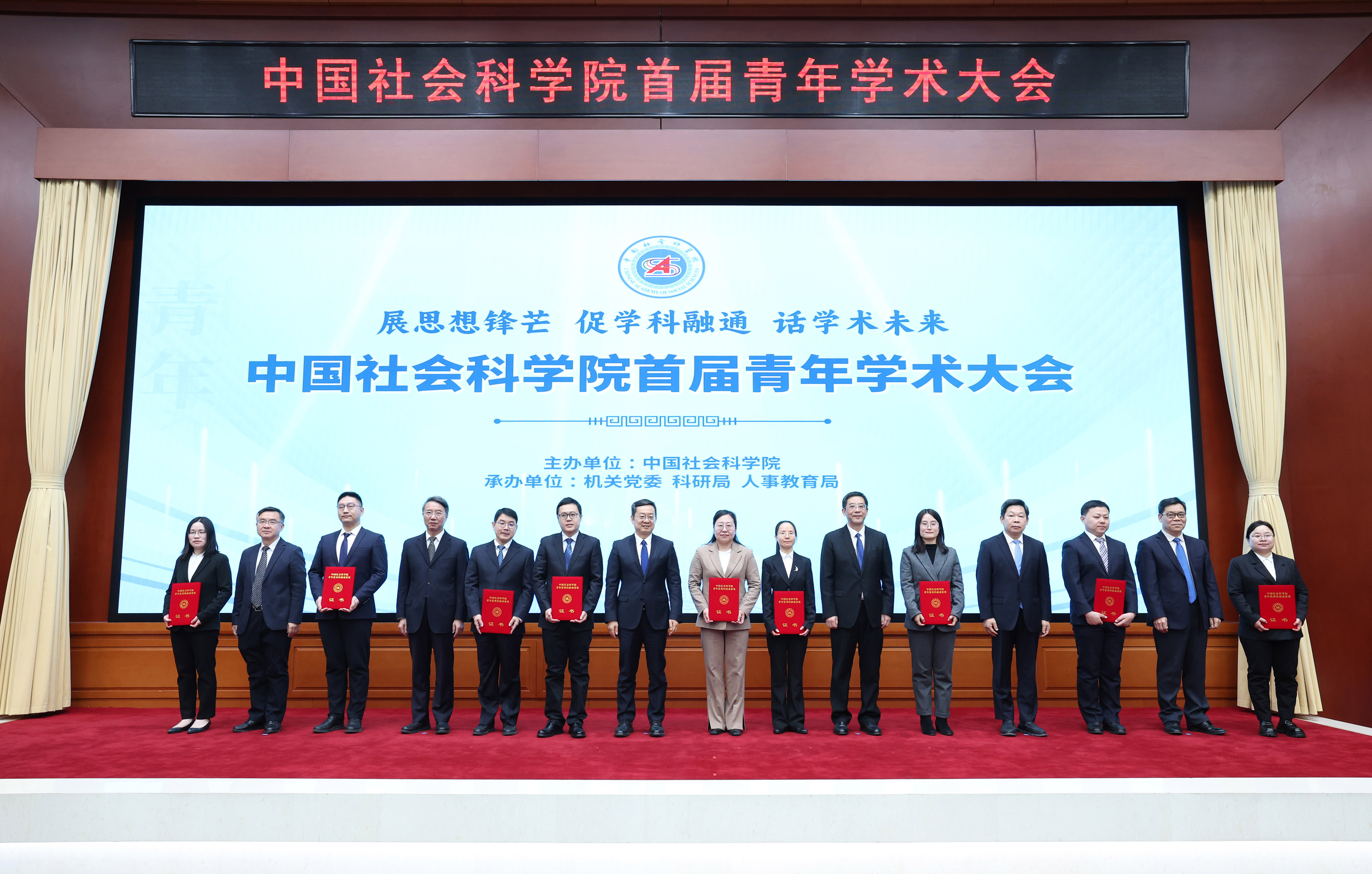 中国社会科学网讯(记者高莹)12月29日,中国社会科学院首届青年学术大会在京召开。院长、党组书记高翔出席会议并讲话。副院长、党组副书记彭金辉主持会议。中央纪委国家监委驻院纪检监察组组长、院党组成员杭元祥,秘书长、党组成员赵志敏,副院长、党组成员赵芮,院党组成员、当代中国研究所所长金民卿出席会议。会议公布了第一届中国社会科学院青年优秀科研成果奖获奖名单,院党组成员为获奖代表颁奖。