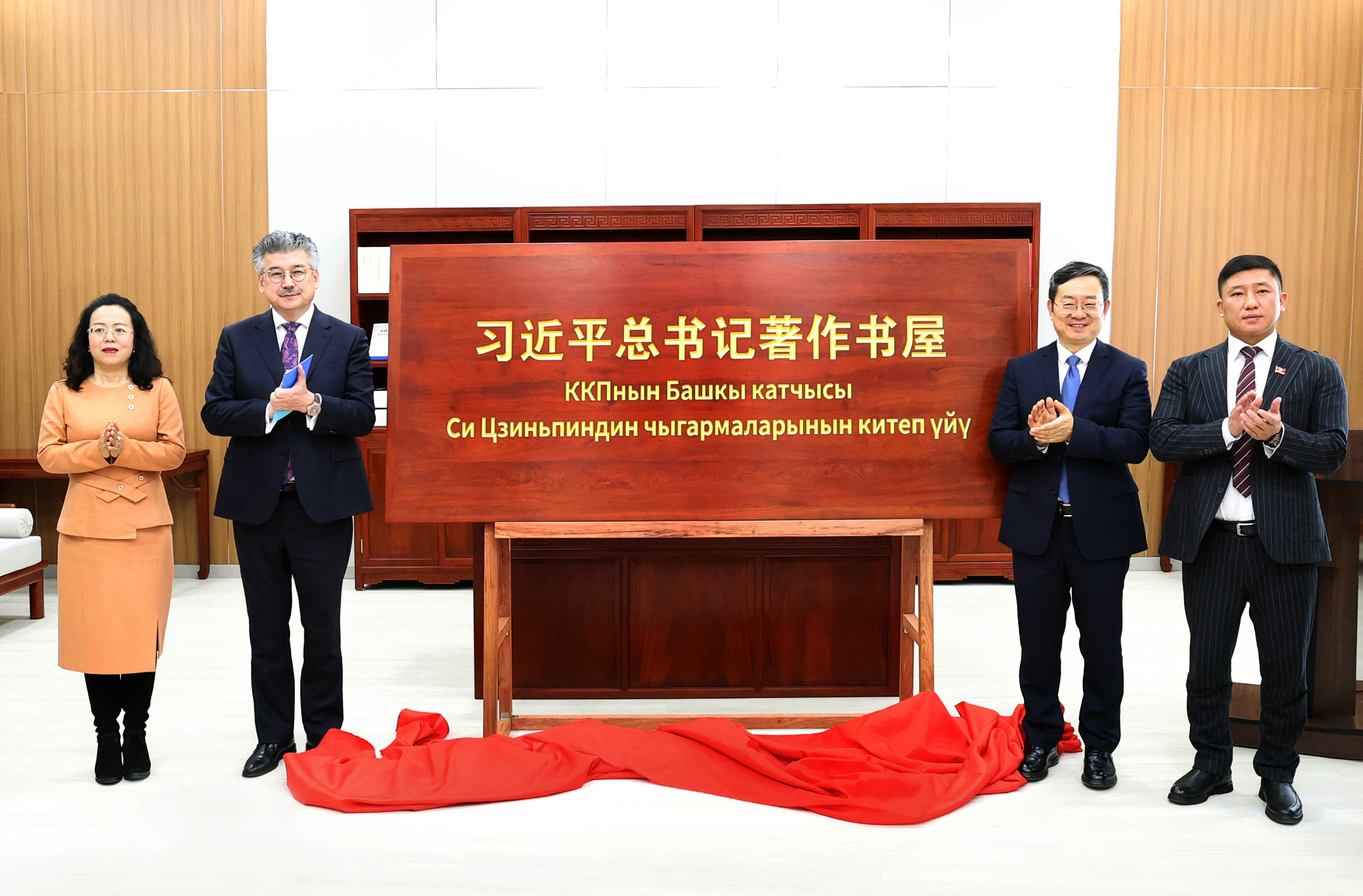 中国社会科学网比什凯克讯(记者 王建峰 褚国飞)当地时间1月28日,“习近平总书记著作书屋”在吉尔吉斯斯坦首都比什凯克举行揭牌仪式。中国社会科学院院长高翔、吉尔吉斯斯坦国务秘书阿尔斯兰·科伊奇耶夫分别致辞,并共同为书屋揭牌。吉尔吉斯斯坦副议长卡里姆·汉杰扎、中国驻吉尔吉斯斯坦大使刘江平、吉尔吉斯斯坦科教和创新部部长古丽扎特·伊萨马托娃、吉尔吉斯国立大学校长多格杜尔别克·琼托耶夫等嘉宾出席揭牌仪式。