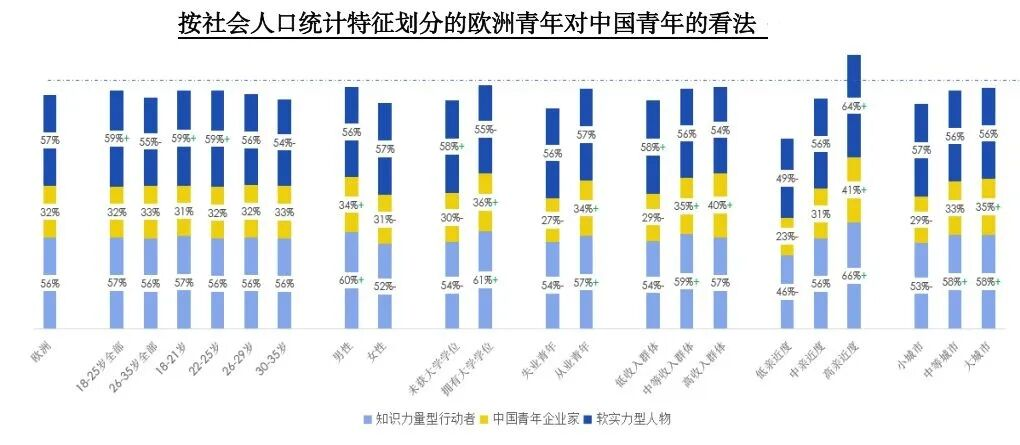 对不同社会人口学群体的进一步分析表明,受教育程度与社会经济地位较高的受访者以及男性,更倾向于将中国青年的影响力与知识生产、科研能力及创业活动联系在一起;相比之下,其他群体则更频繁地提及软实力型行动者,尤其是艺术家等文化领域代表。