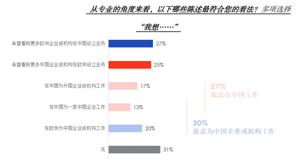 愿意在职业层面与中国开展密切接触的受访者比例相对有限。