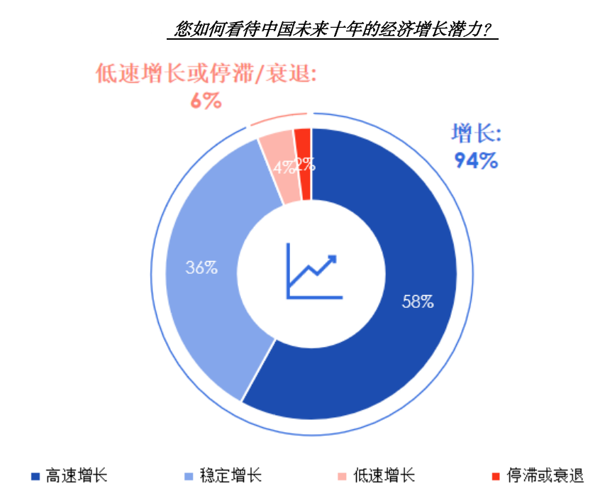 经济上高度看好:绝大多数人认为未来十年中国经济将继续保持当前增速。