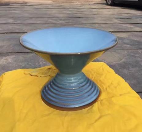 打开窑门,千百道光彩冲出,一炉久望的钧瓷终于亮相,百余作品恰似舞台上的女演员,个个身材得中、修短合度,肩若削成、腰如约素、延颈秀项、华泽毕露,而珠落玉盘,雨打芭蕉的音乐如梦如幻、如露如电,把癸卯秋开窑推向高潮。据说这种声音可随瓷器百年,正因为如此的神奇,把钧瓷的开片音乐舞会命名为一场马拉松式的艺术表演当不为过吧。