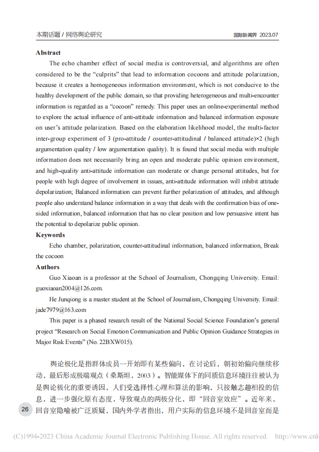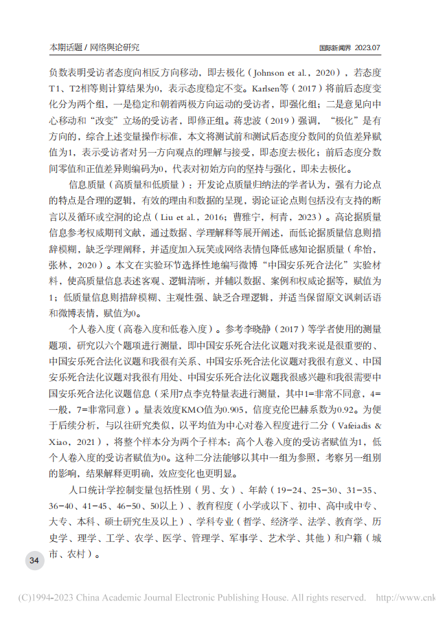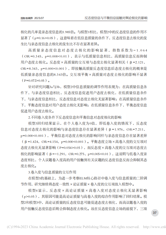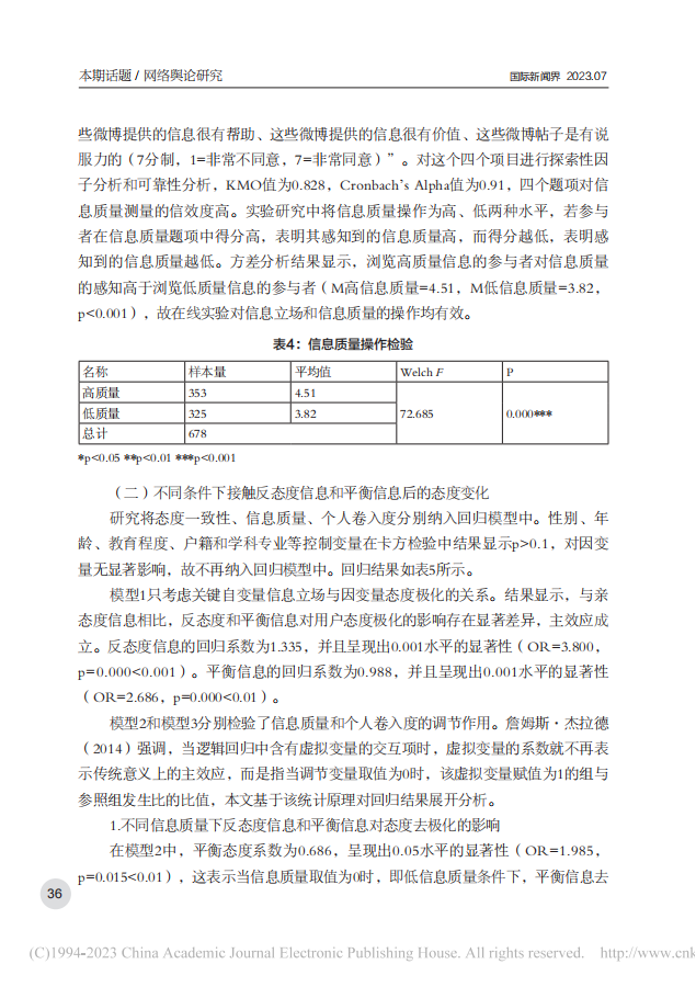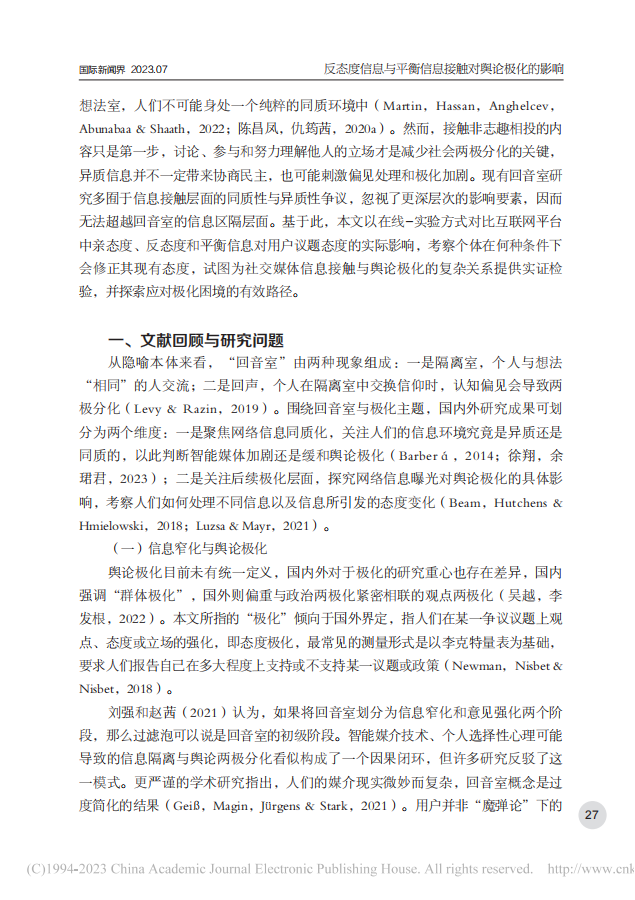 反态度信息与平衡信息接触对舆论极化的影响——一项在线实验的实证检验