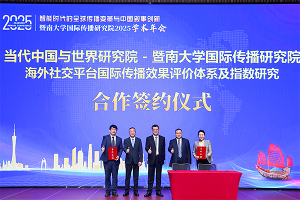 开幕式上,当代中国与世界研究院与暨南大学国际传播研究院举行了“海外社交平台国际传播成果评价体系及指数研究”合作签约仪式。该项目旨在构建一套科学、可量化的国际传播效果评估体系,为相关实践提供数据支持与决策参考。同时,暨南大学国际传播研究院还发布了《暨南大学国际传播研究院项目招标公告》和《暨南大学国际传播研究院博士后招聘公告》。