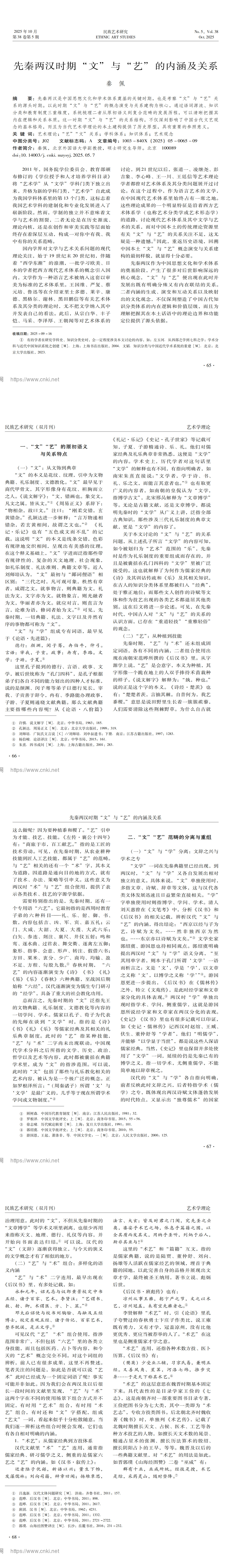 先秦两汉时期 “文”与 “艺”的内涵及关系