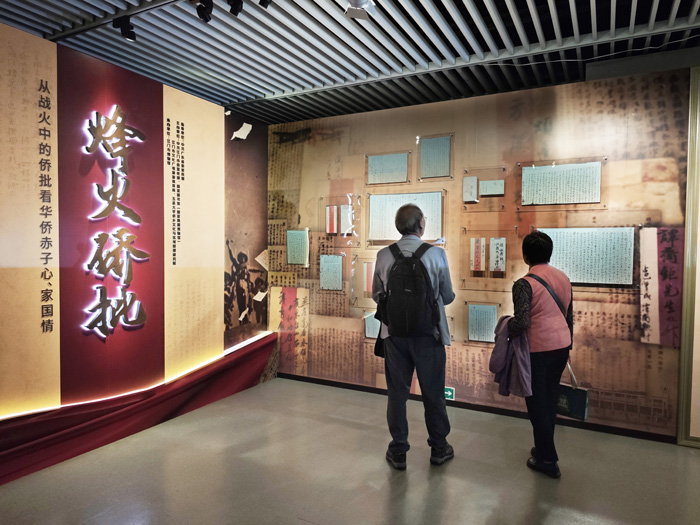 展览分为“山河破碎 觉醒之声”“血色家书 苦难见证”“国民职责 毁家纾难”和“抗战到底 必胜信念”四个篇章,以“侨批”为载体,重温海外华侨的抗战史诗,通过111件/套侨批、历史照片及多媒体装置,将宏大抗战历史落位于个体命运叙事,让泛黄纸笺成为“会说话的历史见证”,用具体可感的朴素文字生动诠释了华侨“爱国、爱乡、爱家人”的赤子情怀,更展现了中华民族在危难中众志成城的精神品格。