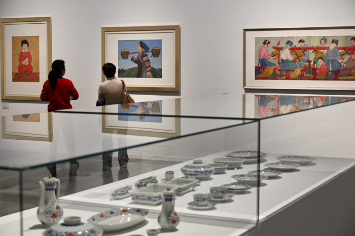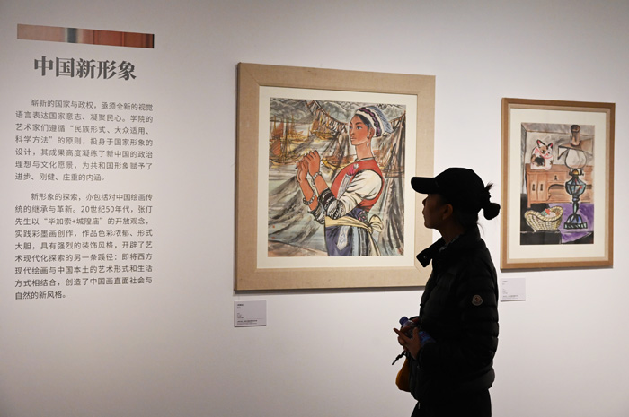 (记者吕家佐)11月11日,记者来到清华大学艺术博物馆,这里正在展出“人民的‘形式’:清华大学美术学院的艺术之路”展览。展览由“人民的形式与艺术创造”和“人民的形式与国家视觉”两部分组成,共展出103幅作品、163套文献资料,通过绘画作品、文献资料、信息可视化年表等多种形式,呈现学院名师大家在不同时代为装饰艺术选择的方向,以及学院对“人民艺术”的学术贡献与社会贡献。