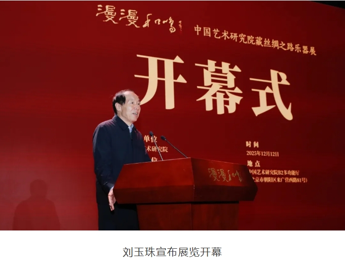 中国社会科学网讯 12月12日,“漫漫和鸣——中国艺术研究院藏丝绸之路乐器展”在中国艺术研究院开幕。国家文物局原党组书记、局长刘玉珠出席开幕式并宣布展览开幕。开幕式由中国艺术研究院党委副书记齐永刚主持。