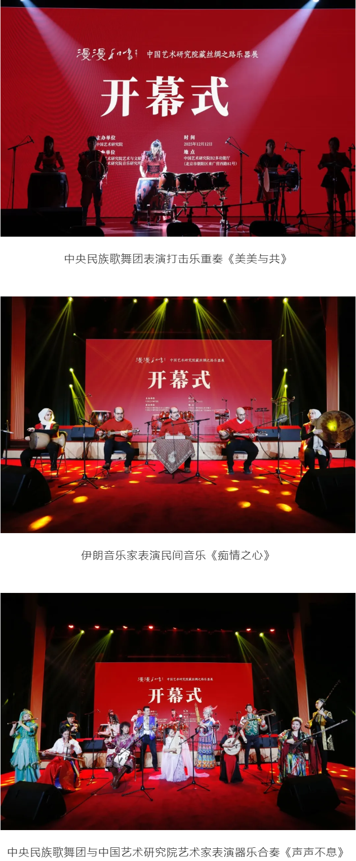 开幕式上,中央民族歌舞团、伊朗音乐家与中国艺术研究院艺术家共同表演了《美美与共》《痴情之心》《声声不息》等乐曲,用跨越国界的旋律生动诠释了“和而不同、美美与共”的丝路智慧。