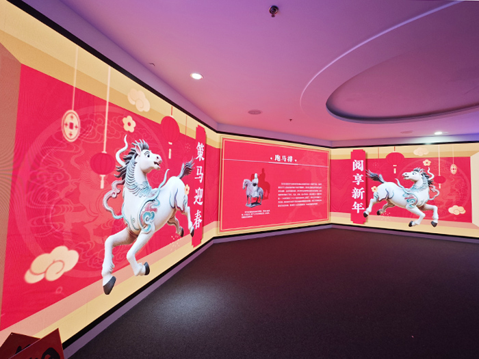 观众还可以在国家图书馆北区二层的三折环幕区浏览“春风得意马蹄疾——2026丙午新春年俗及马文化展”。展览旨在探寻那一匹匹骏马背后的历史故事,感受那奔腾不息、多姿多彩的马文化精神,领略那“春风得意马蹄疾”的豪情诗意。
