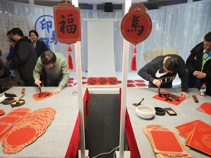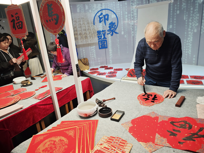 当天下午,国家图书馆北区二层还举办“书春送福”活动。国家图书馆馆员现场书写“福”字,为广大读者送出马年的新春祝福。