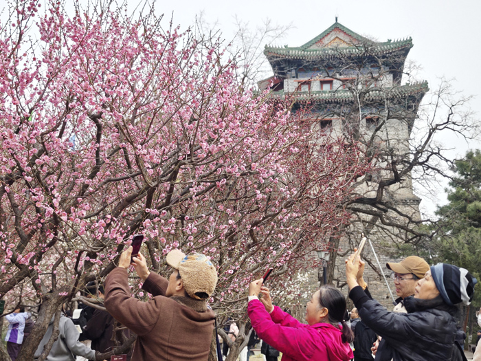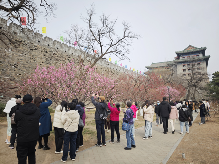 中国社会科学网讯(记者吕家佐)3月14日,记者走进北京明城墙遗址公园,游客们正在欣赏梅花。当日,第十九届北京明城墙梅花文化节正在举办。本届文化节以“明城春始·共赴梅好”为主题,在延续传统赏梅雅韵的基础上,全面升级空间美学设计与多元文化体验。赏梅景、逛市集、参与文化活动……这场为期一个月的春日盛会,邀市民游客共赴明城墙,邂逅独属于初春的“梅”好时光。