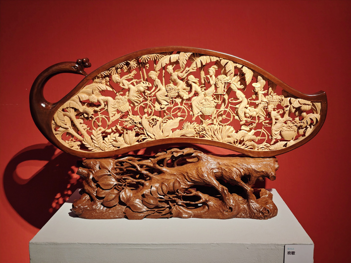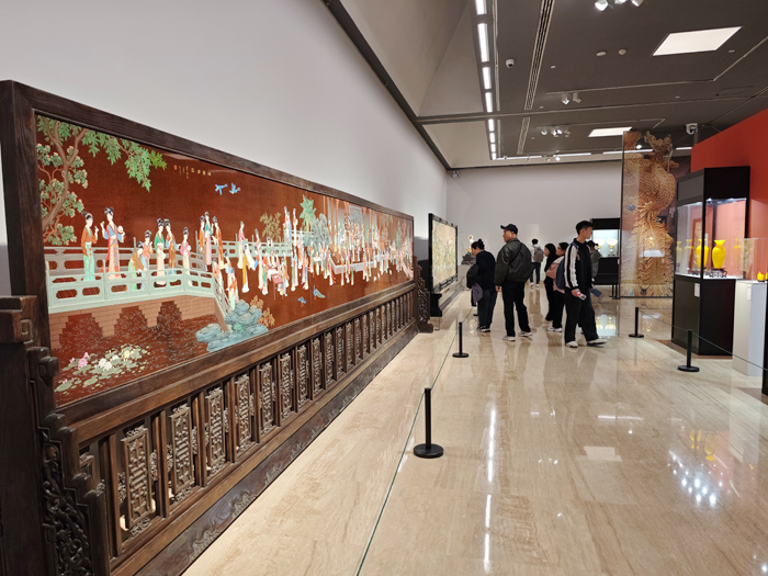 展览既注重工艺美术历史文脉的梳理,通过经典之作回望中国工艺美术的发展历程,也着力呈现当代工艺美术多门类并置汇聚的整体格局,全面展示新时代中国工艺美术传承有序、创新活跃、精品迭出的蓬勃气象。其中,“千年窑火”呈现重要窑口传统与陶瓷工艺的当代延展;“造化心印”展示雕刻艺术在因材施艺中的造物智慧;“天工器度”汇聚漆艺、金工与玻璃的材质魅力与精神表达;“经纬华章”展现纤维工艺在传统与现代之间的持续生长;“民艺新篇”则集中呈现彩塑、剪纸、唐卡、内画壶、木版年画、风筝等门类在新时代的创造性转化与创新性发展;“致敬经典”部分则以近现代工艺美术经典作品为核心,从历史传承视角梳理中国工艺美术的发展文脉,彰显经典之作的审美范式与恒久生命力。