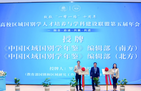 学术共同体建设积极有为。近年来,学院积极响应并参加由中山大学首倡发起的“高校区域国别学人才培养与学科建设联盟”(高盟)(2019)、由北京外国语大学发起的“中国区域国别学共同体”(2022)等全国性区域国别学学术组织的成立与建设。特别值得一提的是,作为副理事长单位,学院深度参与高盟旗下的相关工作,发挥了积极作用。2022年12月,参与创设并协办高盟品牌活动之一的首届“中国区域别学50人论坛”。2023年6月,主办首届“全国区域国别学刊物主编高层论坛”。2023年10月,学院被教育部国别和区域研究工作秘书处和高盟秘书处授予《中国区域国别学年鉴》编辑部(北方)牌匾。作为承办单位,学院目前为年鉴编辑部(北方)配备了专门办公用房以及10人左右的编辑队伍,主要负责执行年鉴年度编纂工作并资助其出版。首辑年鉴《区域国别学年鉴2023》已于2025年6月由商务印书馆正式出版,并被中国知网(CNKI)《中国年鉴网络出版总库》收录,学界反响积极。此外,学院还承办“中国欧洲学会德国研究分会第18届年会”(2024)、协办“第三届俄国史青年学者研讨会”(2025)等全国性学术会议。