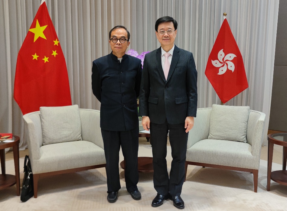 中国社会科学网讯 2023年7月14日,香港特别行政区行政长官李家超在香港行政长官办公室会见香港中国学术研究院常务副院长黄平。