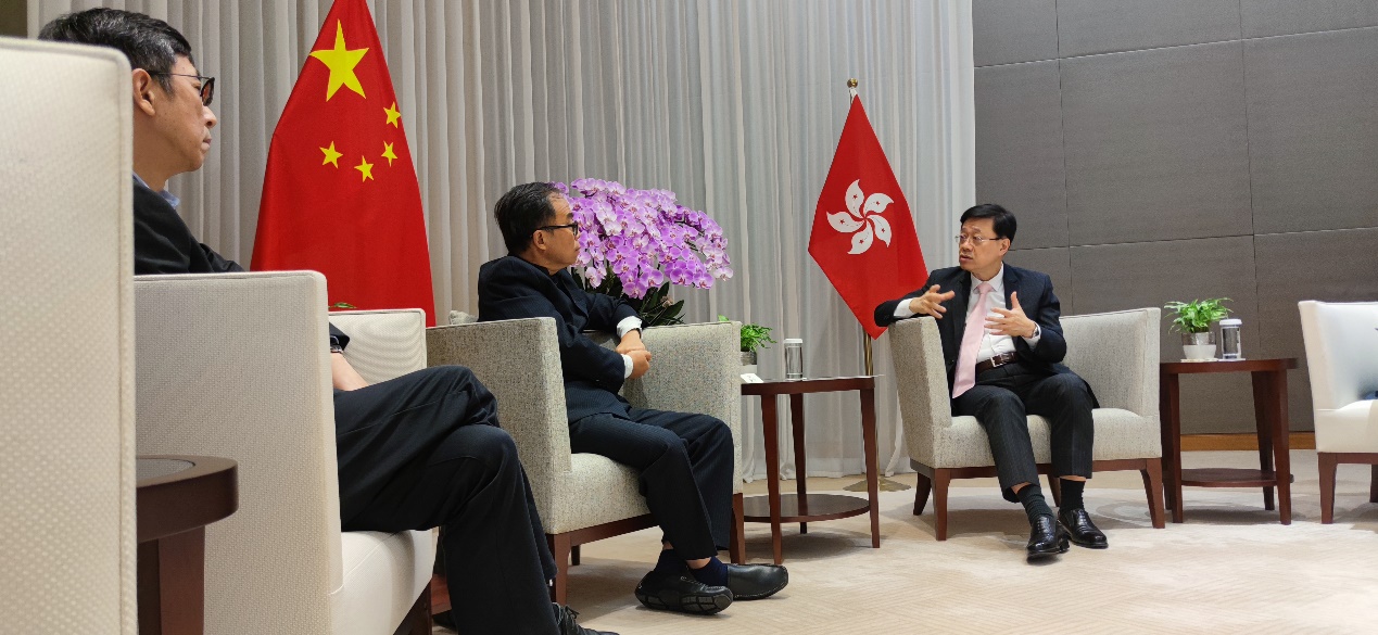 香港特区政府律政司司长林定国和政制及内地事务局局长曾国卫等参加了会见和会谈。