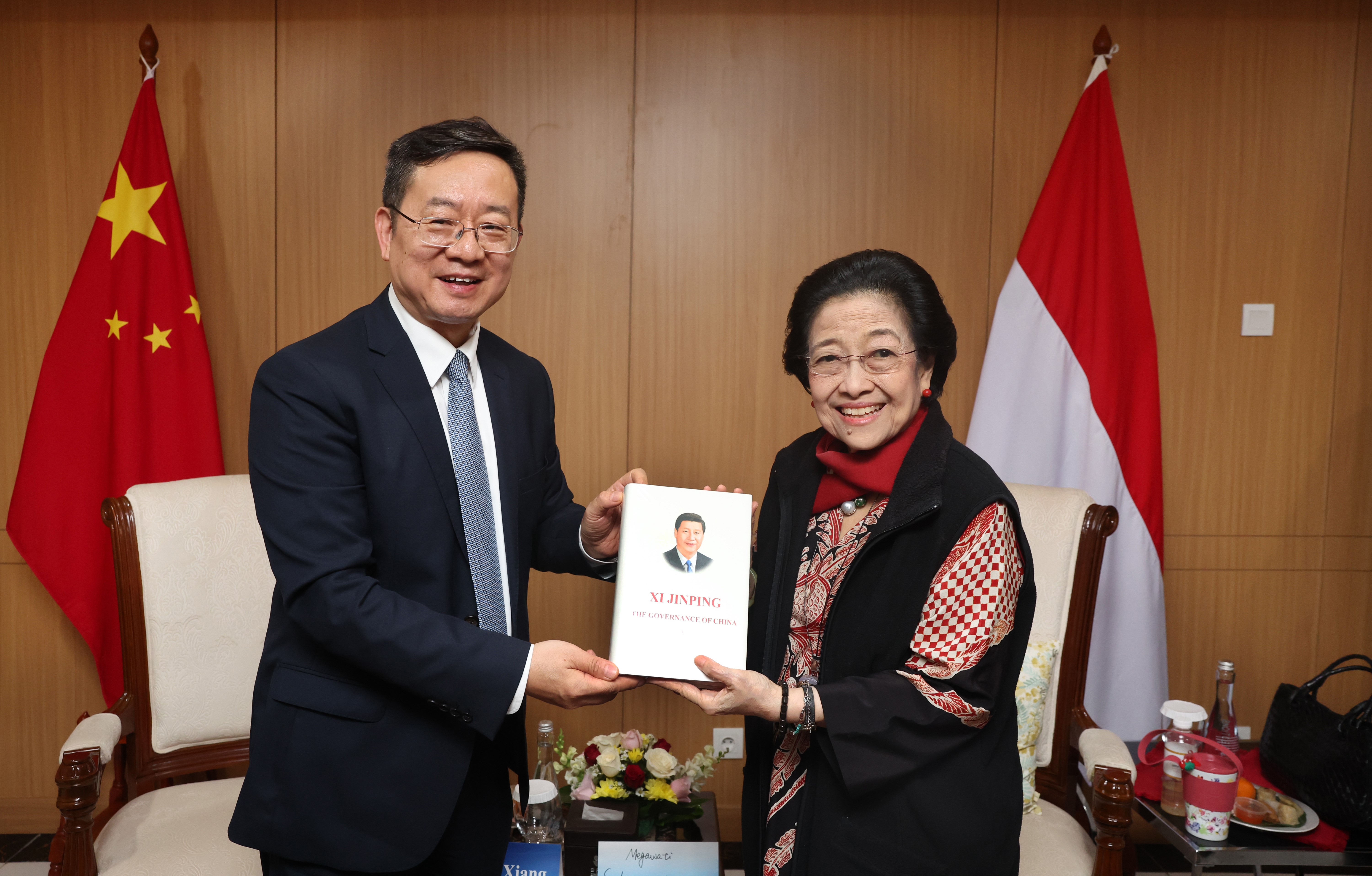 高翔代表中国社会科学院向梅加瓦蒂·苏加诺赠送《习近平谈治国理政》第一至五卷 本网记者 朱高磊/摄