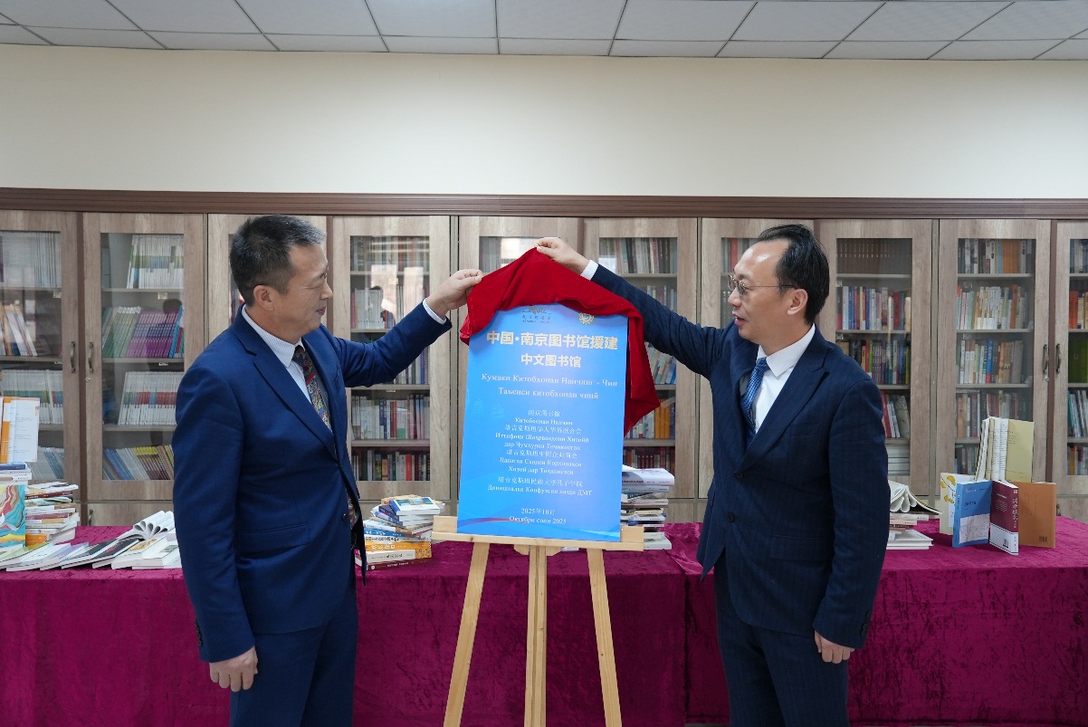 中国社会科学网讯(记者王广禄)1月20日下午,南京图书馆援建塔吉克斯坦共和国首家“中文图书馆”揭牌仪式在位于塔吉克斯坦共和国首都杜尚别的塔吉克斯坦民族大学孔子学院举行。