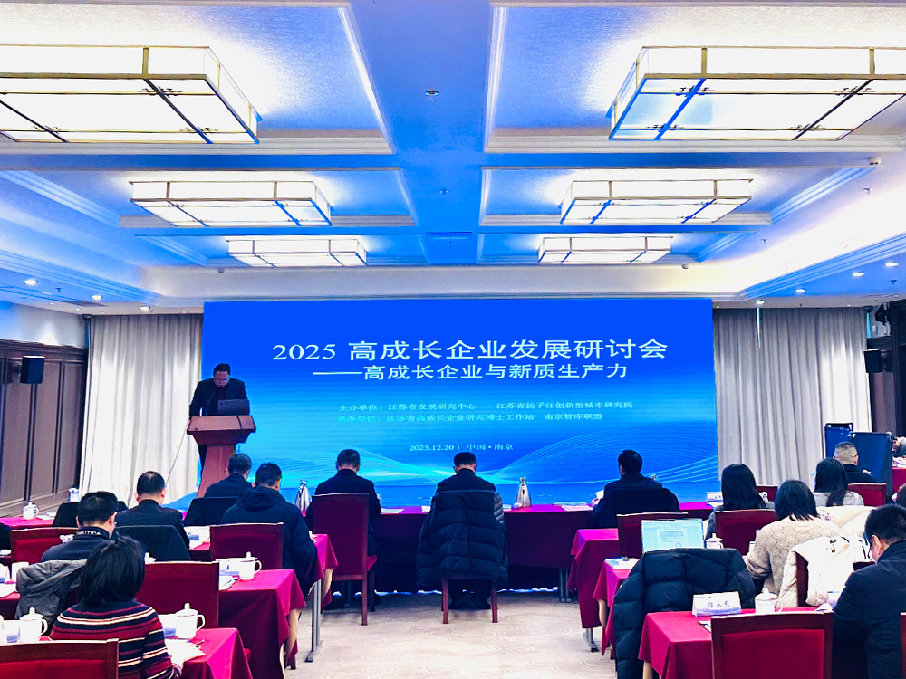 中国社会科学网讯(记者王广禄)12月20日,由江苏省发展研究中心、江苏省扬子江创新型城市研究院主办,江苏省高成长企业研究博士工作站、南京智库联盟承办的2025高成长企业发展研讨会在南京举行。本次研讨会以“高成长企业与新质生产力”为主题,围绕国家关于发展新质生产力的部署,总结高成长企业在技术创新、要素优化和产业升级中的典型做法,探索可复制、可推广的经验模式,为江苏打造新质生产力发展高地、在推进中国式现代化中继续走在前、做示范提供理论支持与实践参考。